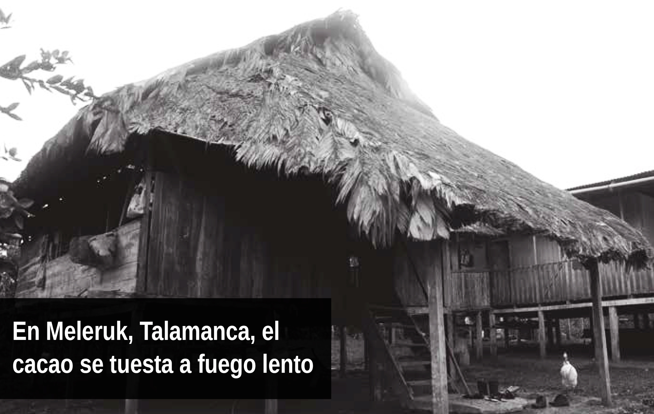 En la olla humea el cacao caliente, que ha sido preparado con agua y batido con un molinillo de madera. Varias ollas están sobre el fogón tradicional, en la casa principal de la familia Buitrago Páez. Ésta se levanta sobre postes de madera, y la rodean las otras casas de madera de las y los integrantes de la familia, frutales y nidos de oropéndolas. Bajo las casas se pasean chanchos, una pata con 10 patitos, chompipes y perros.